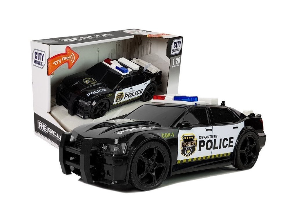 - Policejní autíčko 1:20 Frikční pohon Zvukové efekty Světelné efekty Černé ⭐ Policejní autíčko 1:20 je hračka, která přenese vaše dítě do světa vzrušujících honiček a záchranných akcí!