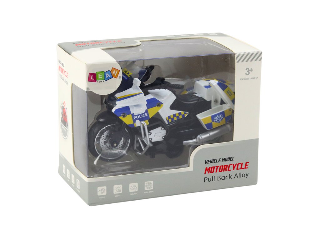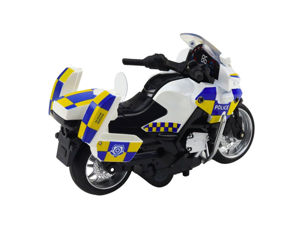 - Náš policejní motocykl je vyroben z odolného materiálu a má funkci zvukového signálu, kterou aktivujete stisknutím zadní části motorky
