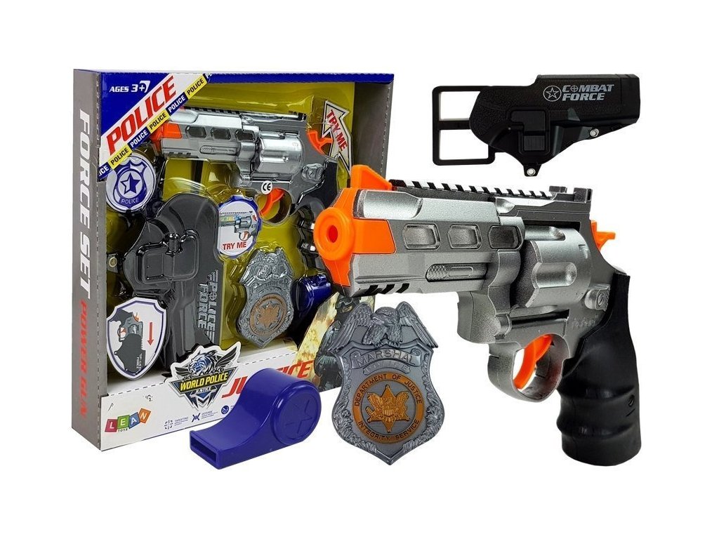 - Policejní sada Revolver 20 cm Odznak Pouzdro Píšťalka Zvukové efekty Světelné efekty Hledáte sadu zajímavých hraček pro děti?