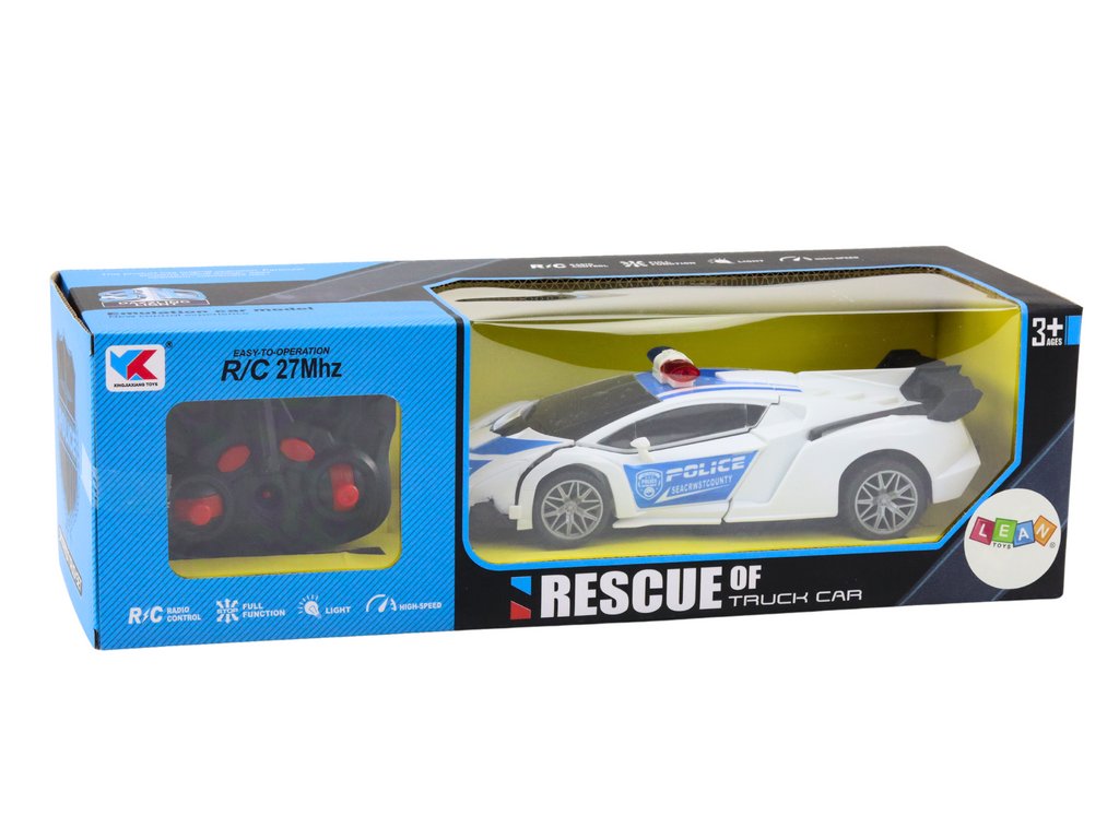 Policejní R/C Auto 2v1 s Robotem Zvuky a Světly Tato policejní R/C hračka je ideální volbou pro všechny mladé řidiče, kteří fascinovaně sledují práci záchranných složek