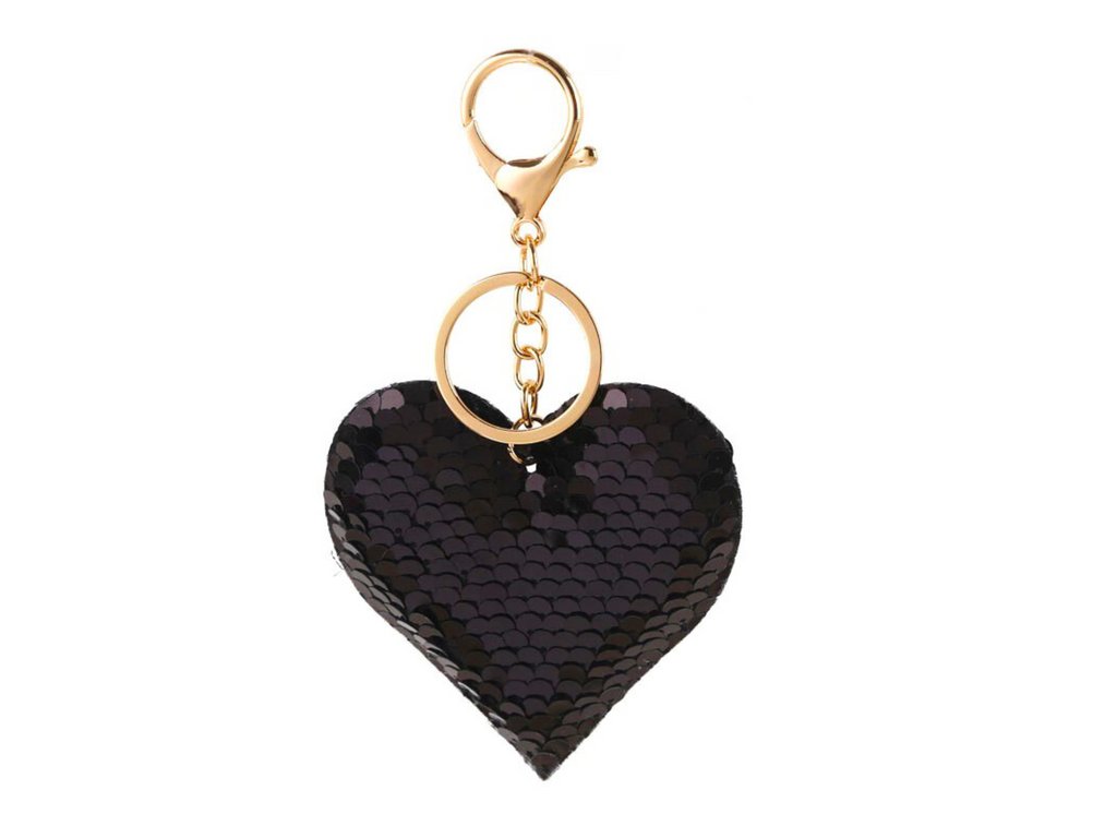 Přívěsek ve tvaru srdce s dvoustrannými flitry je elegantní a stylový doplněk Přívěsek je vyrobený ve tvaru srdce a je ozdoben černými flitry, které mu dodávají elegantní a zářivý vzhled