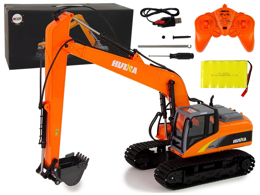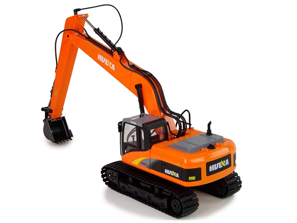 Profesionální pásové rypadlo Dálkově ovládaná 2,4 GHz LED světla 15 funkcí Hliníková lopata! Stroj v měřítku 1:14 Vlastní staveniště ve svém pokoji?