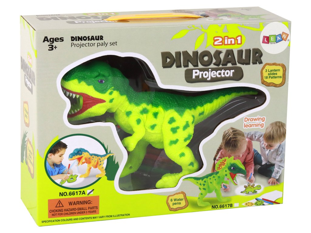 PROJEKTOR DINOZAUR Promítá obrázky k vybarvení! Projektor, dinosaurus na hraní a lampička