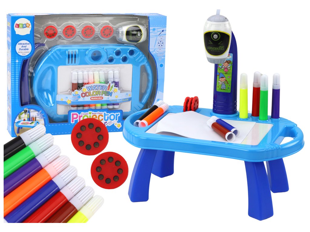 - Projektor na kreslení Stoliczek Modrý Projektor na kreslení se stolkem je neobvyklá hračka, která dětem otevírá neomezené umělecké možnosti