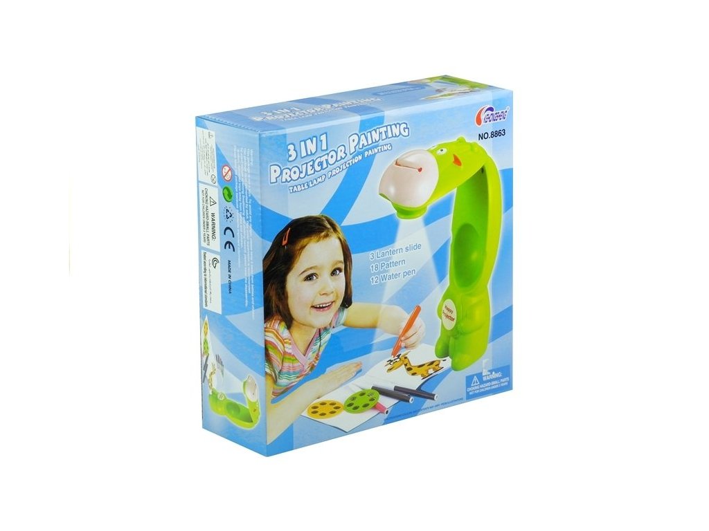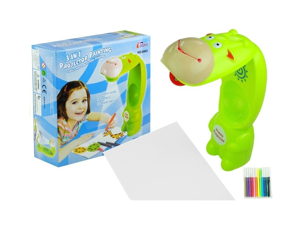 Projektor žirafa na kreslení a malování Projektor je skvělou volbou pro každé dítě, které rádo maluje a kreslí Hra s ním umožňuje kopírovat obrázky z přiložených šablon, promítat je na zeď a především vytvářet originální, vlastní díla