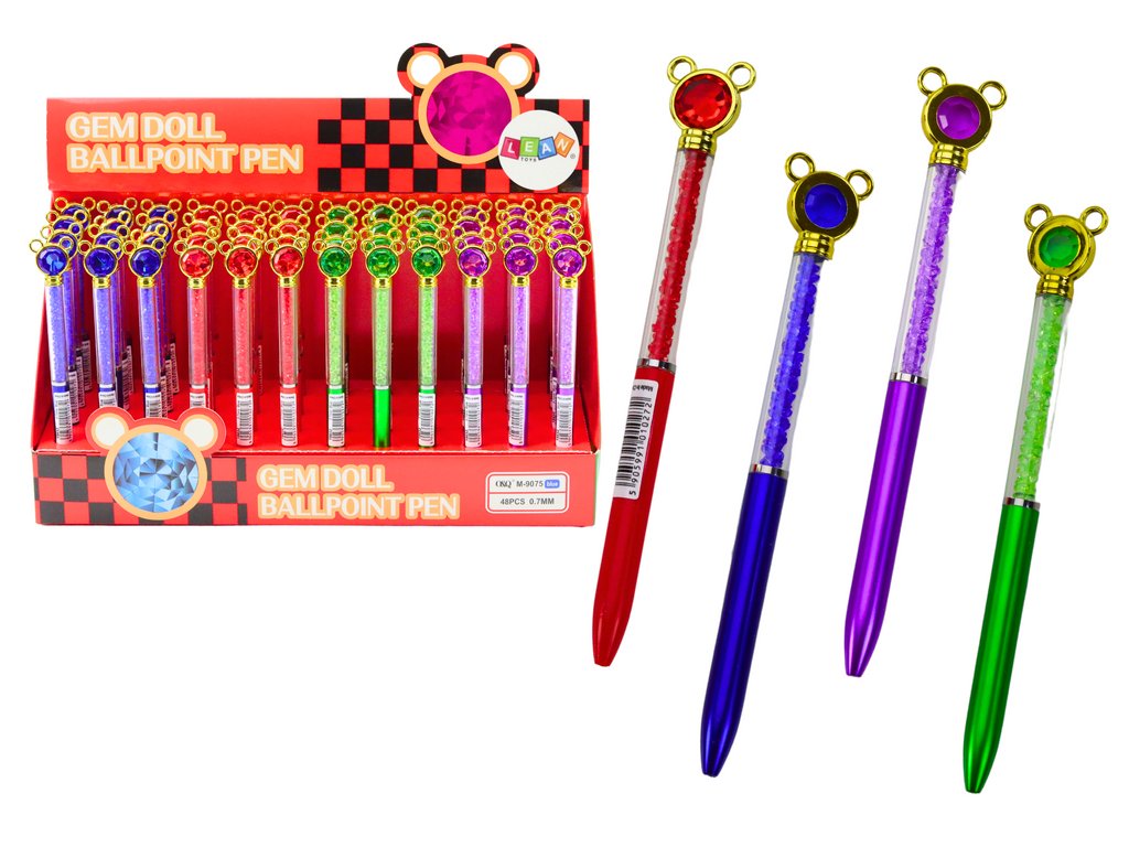 - Průhledné tělo propisky plné drobných kamínků dodává nezaměnitelný lesk