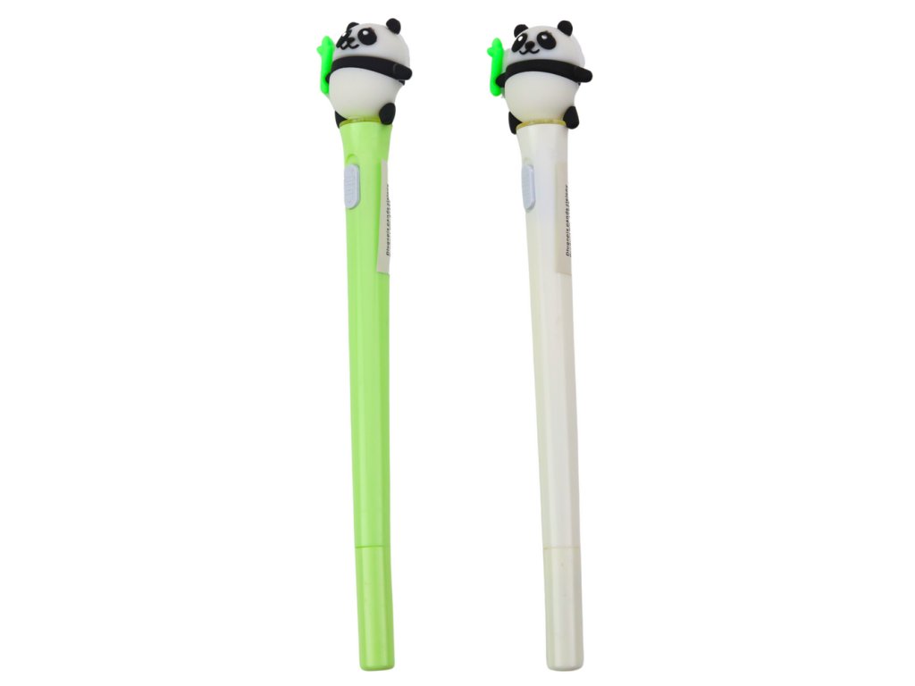 - Figurka pandy umístěná na konci pera je vybavena spínačem světélka, který přidává interaktivnost a činí psaní ještě příjemnějším