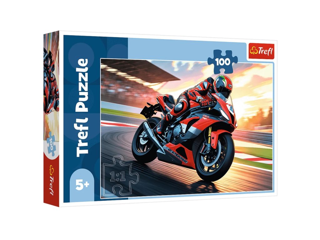 - Rychlý motocykl Trefl 16489 je puzzle skládající se ze 100 dílků, navržené s ohledem na malé fanoušky motorismu