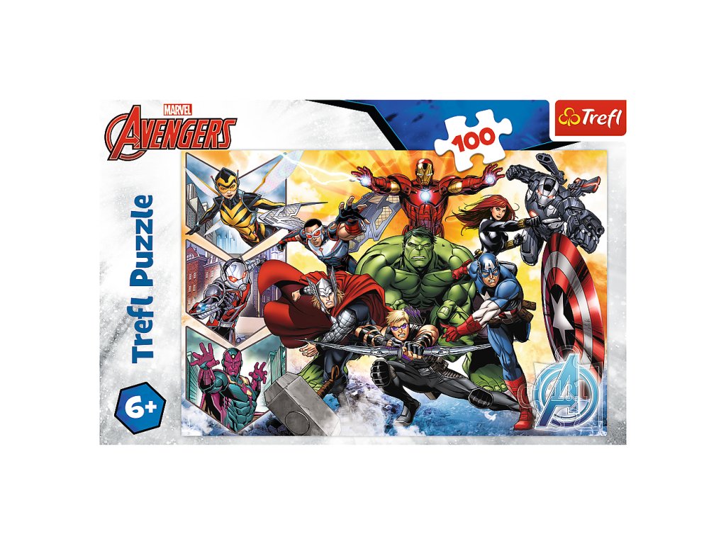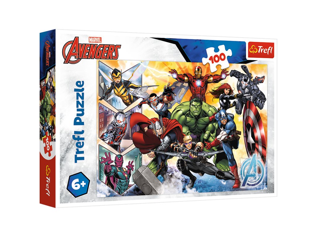 Síla Avengersů Trefl 16431 je ideální volbou pro všechny fanoušky a fanynky filmových produkcí Marvel, zejména pak filmu Avengers Tento puzzle je složen ze 100 dílků a po složení vytvoří obrázek o rozměrech 410x275 mm