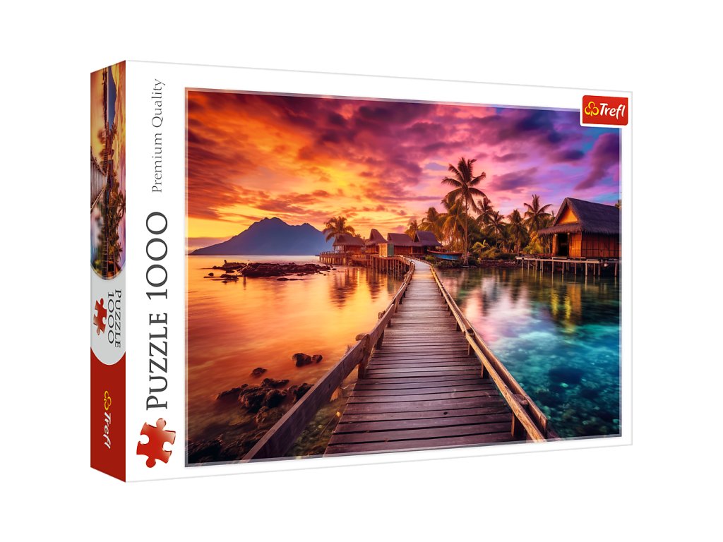 Puzzle - "1000" - Rajský ostrov Trefl 10928 je ideální volbou pro všechny nadšence skládání. Tyto krásné puzzle, skládající se z 1000 dílků, zachycují exotický západ slunce. Po dokončení vytvářejí nádherný obraz o rozměrech 683x480 mm.
