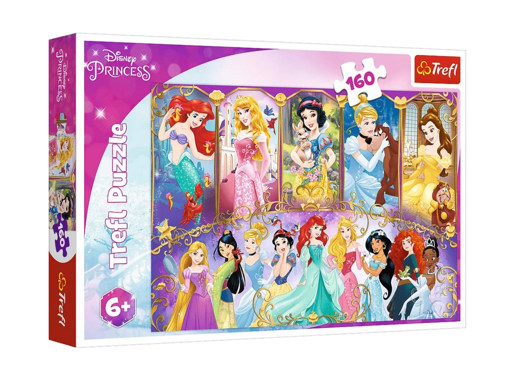 - Puzzle Portréty Princezen 160 dílků Trefl 15407 Portréty Princezen je puzzle, které se skládá ze 160 dílků, navržené pro všechny milovníky princezen z animovaných filmů Disneye