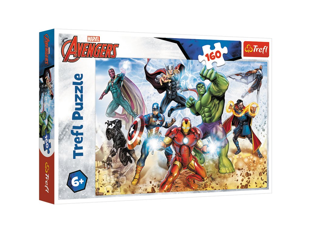 Puzzle - 160 - Připraveni zachránit svět - Disney Marvel Avengers 15368 je skládačka složená ze 160 dílků, navržená pro všechny fanoušky a fanynky animovaného filmu Avengers.