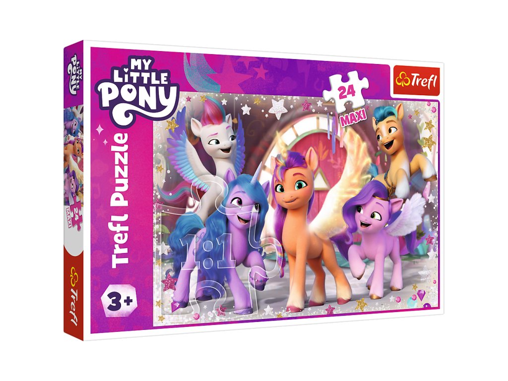 - Veselý den poníků My Little Pony Trefl 14355 jsou puzzle skládající se z 24 velmi velkých dílků, navržených s ohledem na všechny fanoušky značky My Little Pony