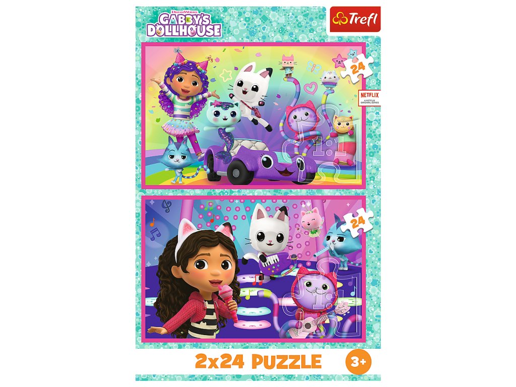 Puzzle 2x24 Zábava s Gabby, známá také jako Kočičí domeček Gabby, je produkt od společnosti Universal Gabby's Dollhouse Trefl s kódem produktu 5900511344332