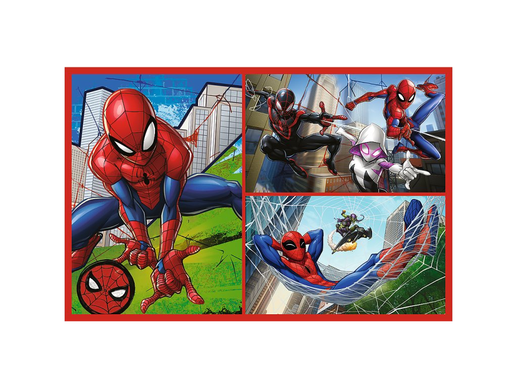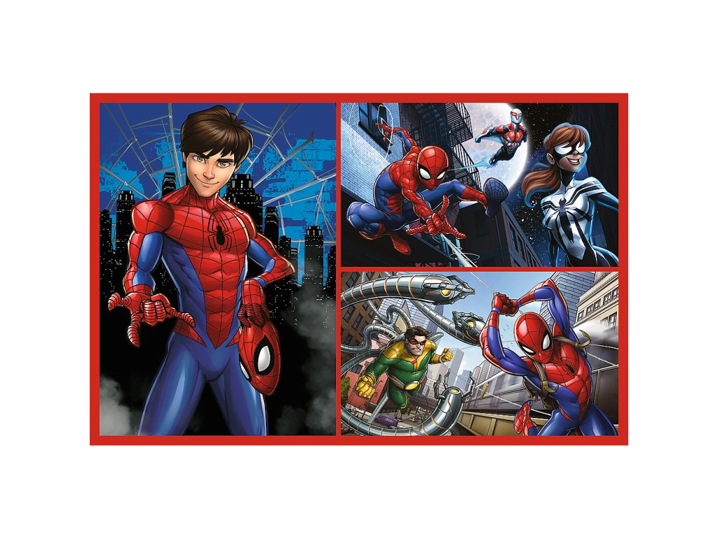 Skládání se tak stává ještě zajímavějším a může se k němu přidat více dětí Pavoučí příběhy jsou puzzle, které zobrazují koláže z hrdinů animace Marvel Spider-man