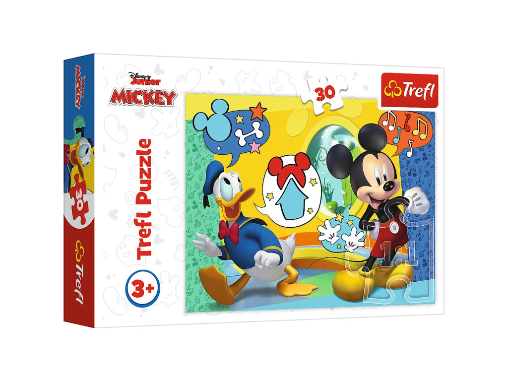 Puzzle - "30" - Mickey Mouse a Veselý Dům Trefl 18289 jsou puzzle skládající se z 30 dílků.