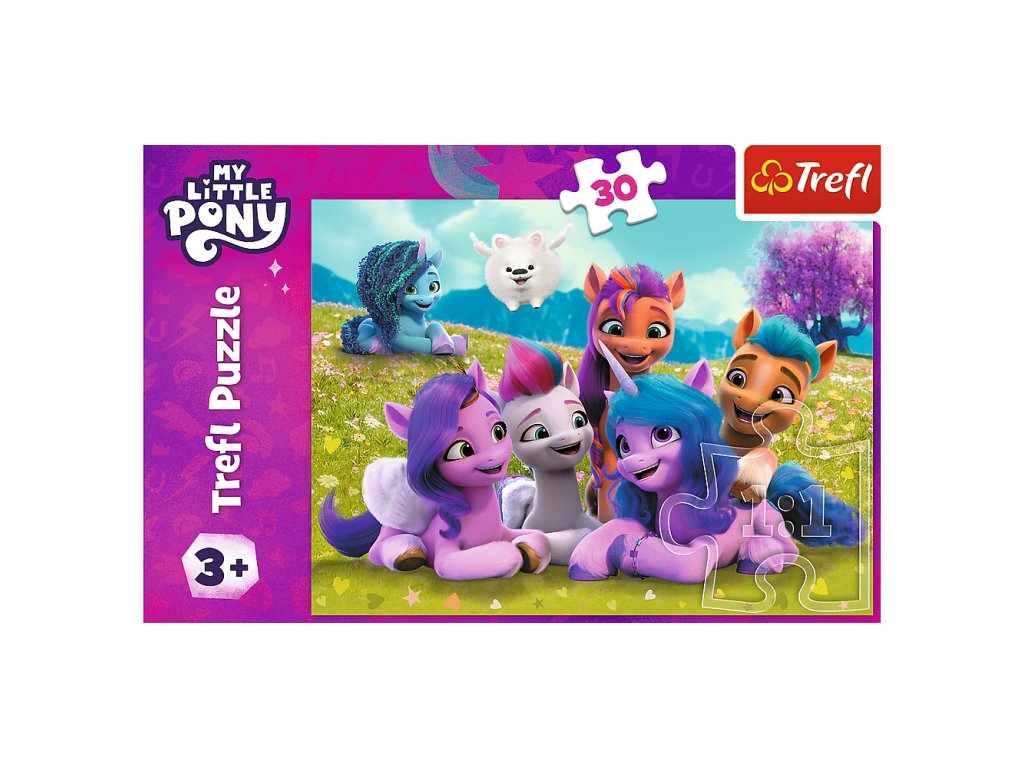- Přátelští koníci Pony My Little Pony Trefl 18299 se skládá z 30 dílků a bylo navrženo pro všechny fanoušky a fanynky animovaného seriálu My Little Pony