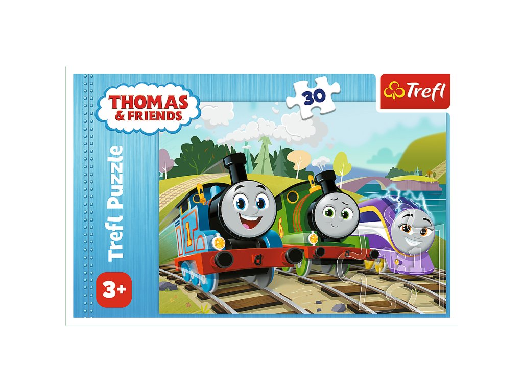 - Veselý Tomáš Trefl 18294 je skládačka obsahující 30 dílků, navržená speciálně pro malé nadšence pohádky Mašinka Tomáš a jeho přátelé