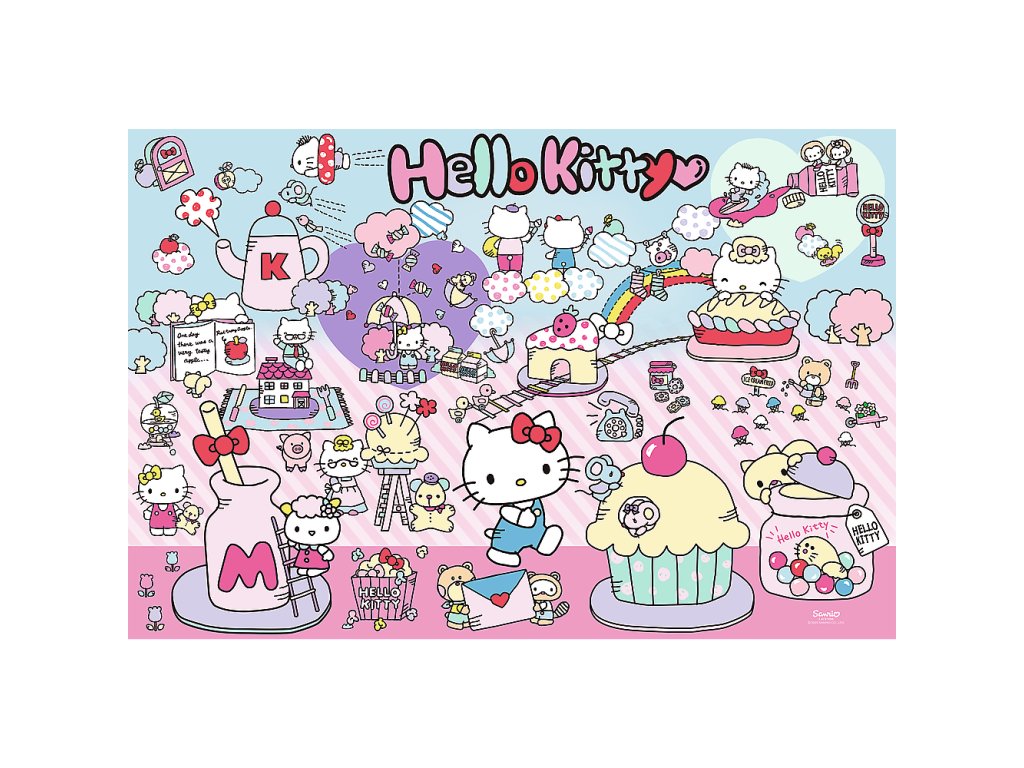 Poznej Svět Hello Kitty je sada skládající se z 300 dílků, která zobrazuje známou postavičku z pohádky Hello Kitty Po sestavení vznikne obrázek o rozměrech 600x400 mm