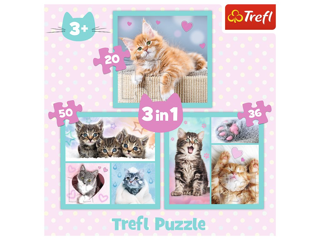 Sladká zvířátka Trefl 34862 přináší trojnásobnou radost ze skládání! Tato sada obsahuje tři různé sestavy, které zobrazují roztomilé malé koťátka