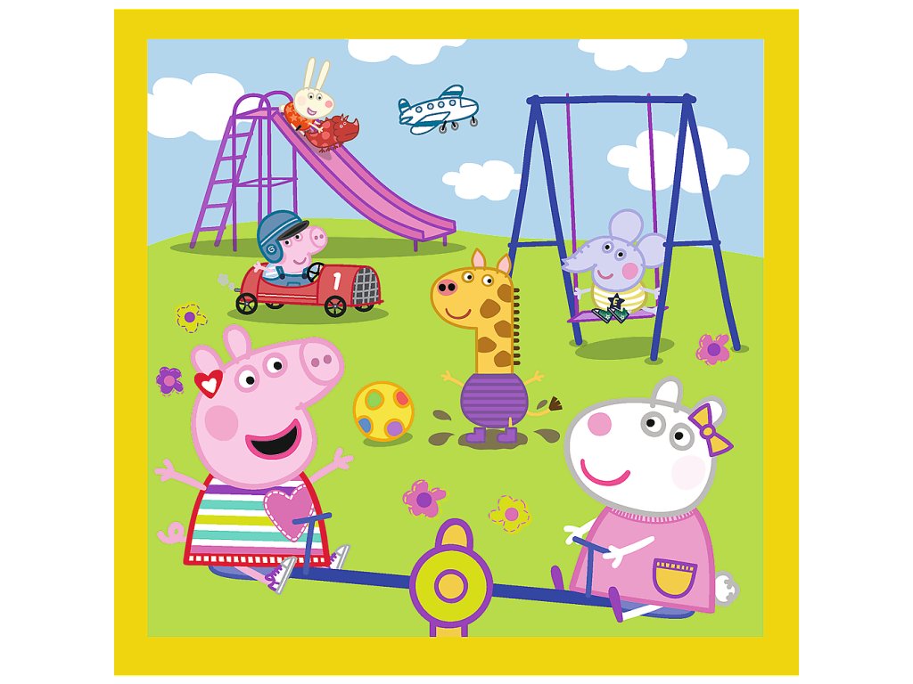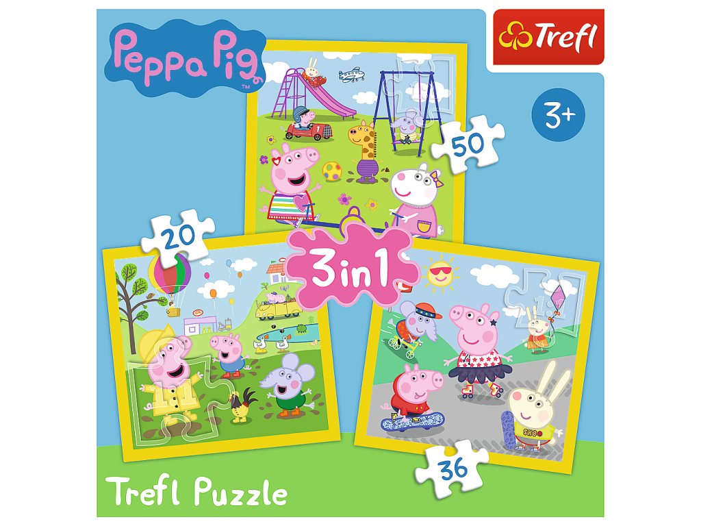 Puzzle - 3v1 - Veselý den Peppy - Prasátko Peppa Trefl 34849 je ideální hrou pro děti, které milují skládání.