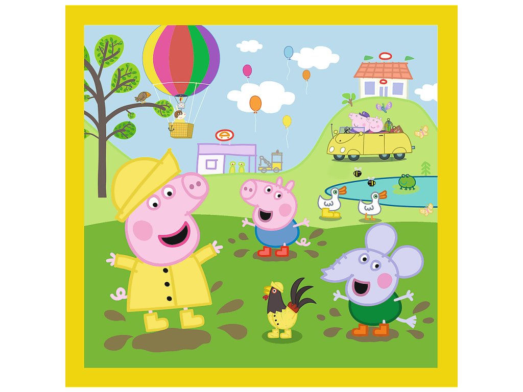 - Tento set obsahuje tři různé puzzle, které zobrazují oblíbené motivy ze světa prasátka Peppy