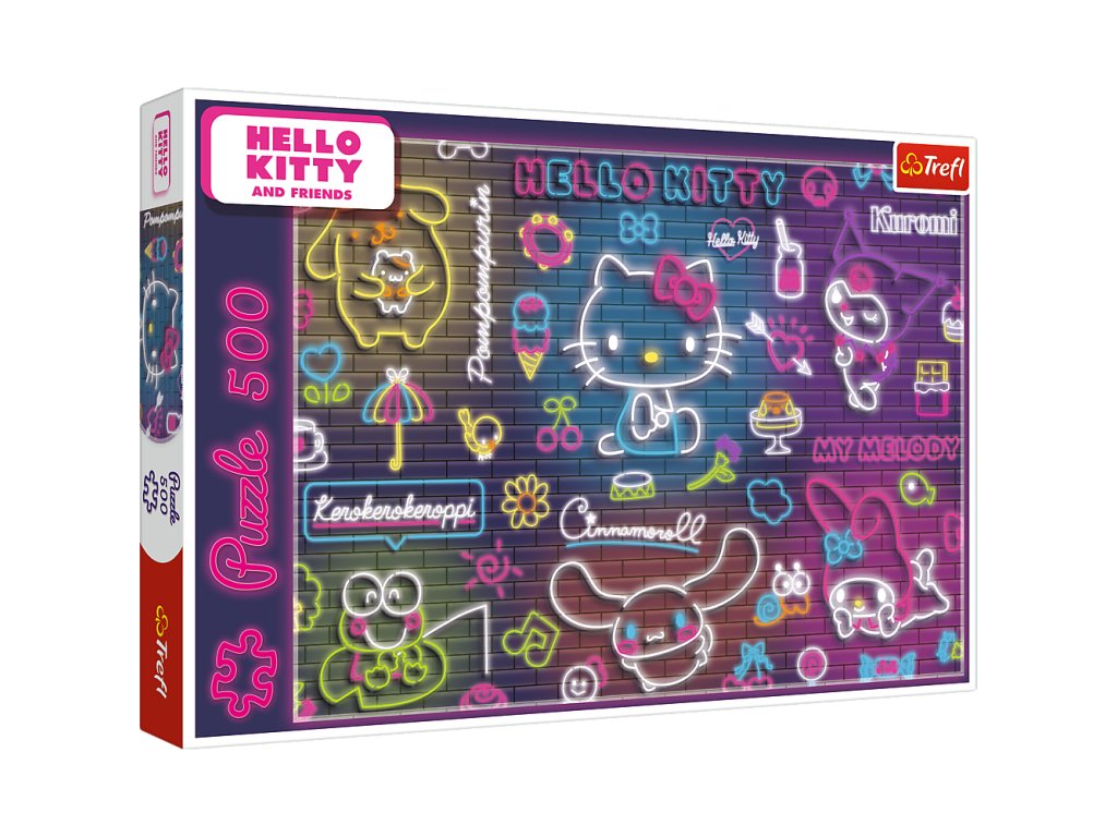 Puzzle Neon Hello Kitty obsahuje 500 dílků, které po složení vytvoří neonový obrázek s motivem známého animovaného seriálu Hello Kitty.