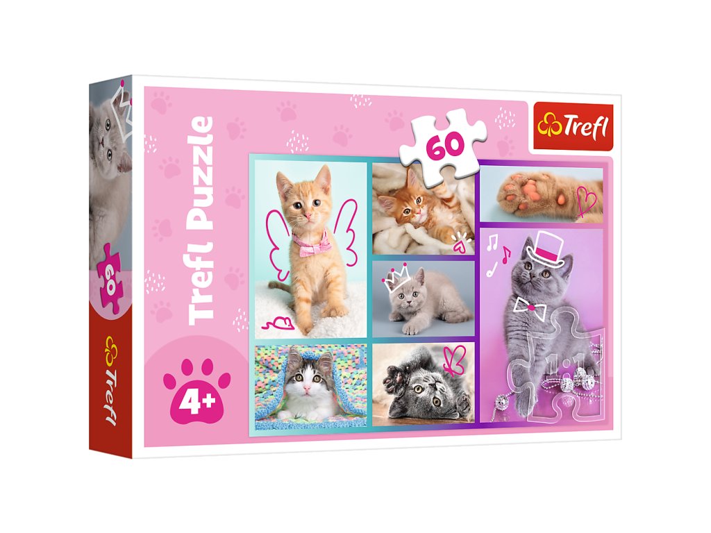 - Roztomilá koťátka jsou puzzle skládající se ze 60 dílků, navržené pro všechny milovníky roztomilých koťátek