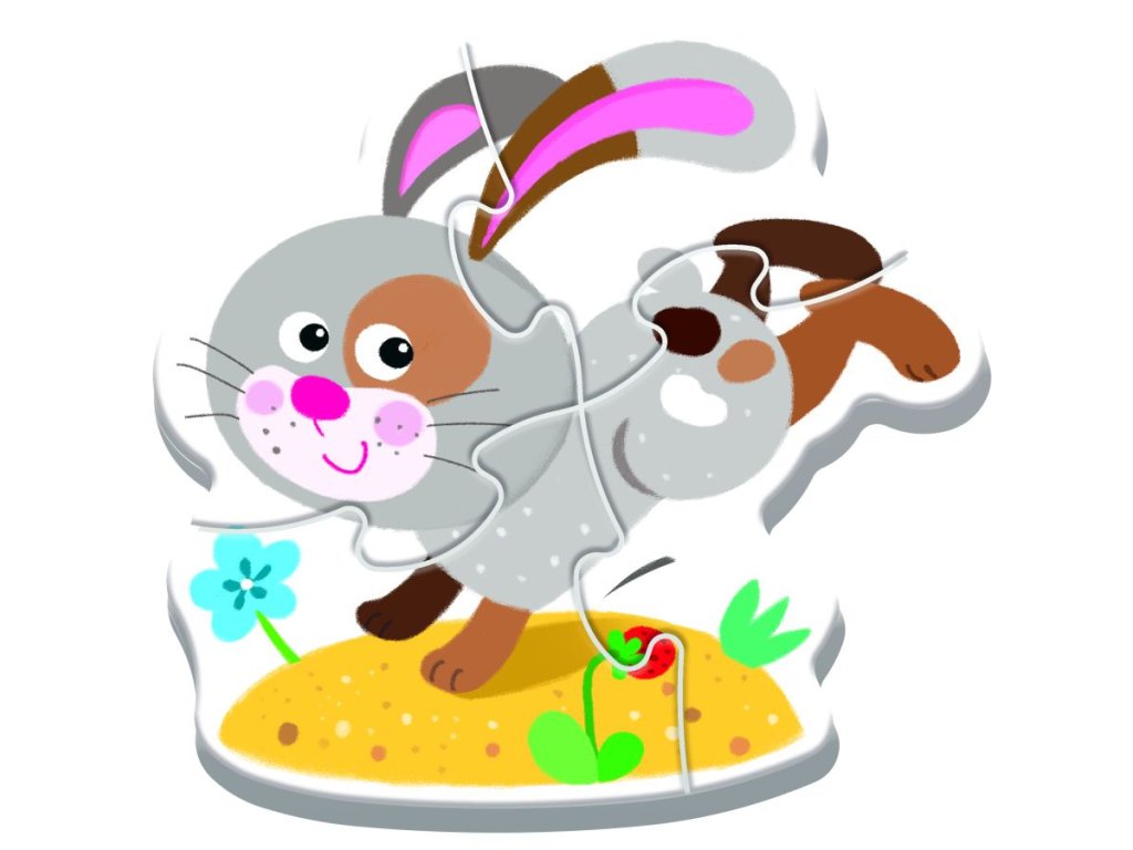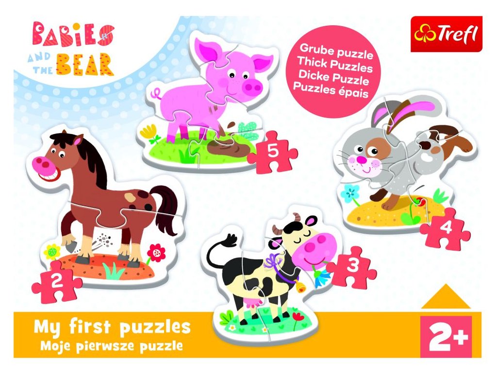 Puzzle - Baby Classic - Na farmě - Bobaski a Medvídek Trefl 36127 je velká skládačka z pevného kartonu určená pro nejmenší děti, ideální pro zahájení dobrodružství s puzzlemi.