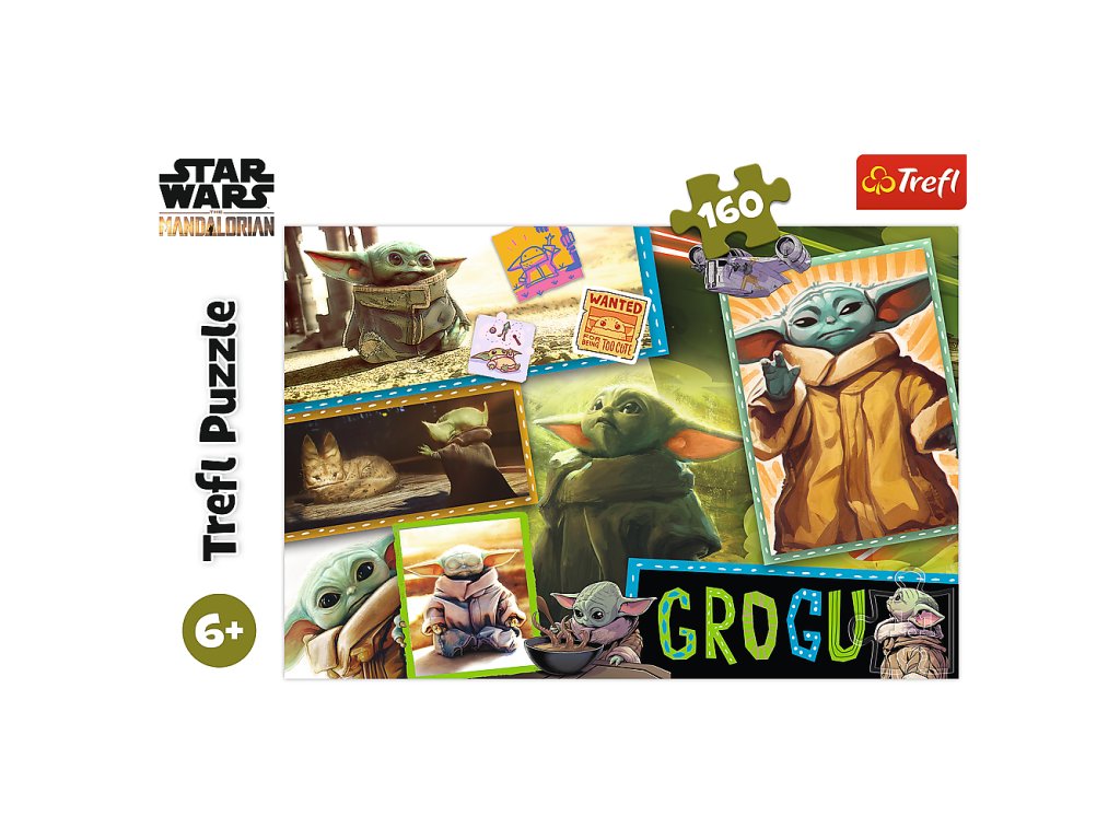 - Grogu Star Wars Trefl 15411 Grogu, jinak znám jako Baby Yoda, je hlavní postavou těchto puzzlí skládajících se ze 160 dílků, vytvořených s myšlenkou na všechny fanoušky filmů Mandalorian a Star Wars