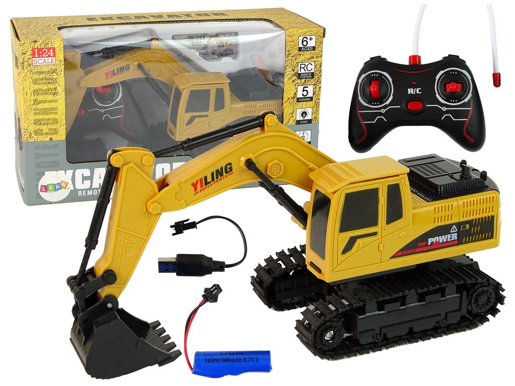 - R/C bagrovací vozidlo 1:24 v zářivě žluté barvě je dynamická a funkční hračka, která dětem poskytne hodiny vzrušující zábavy