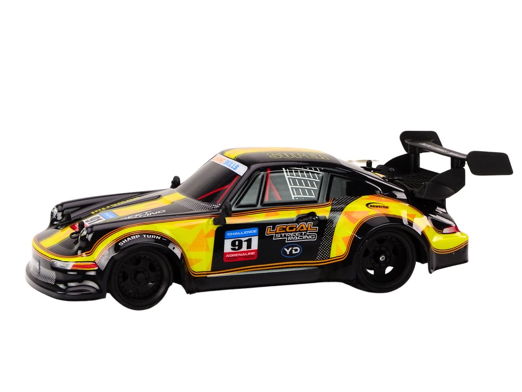 - RC Auto na dálkové ovládání 1:16, vybavené gumovými koly pro driftování, v žluté barvě je snem každého automobilového nadšence