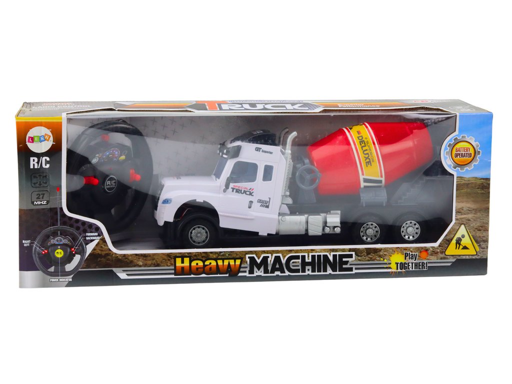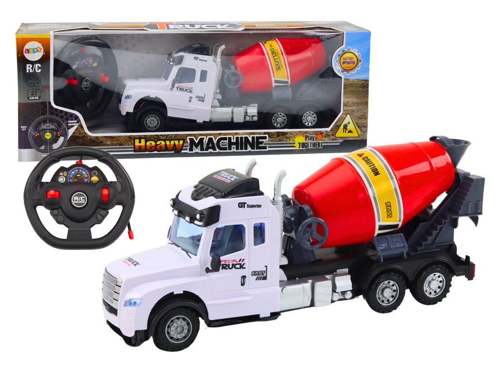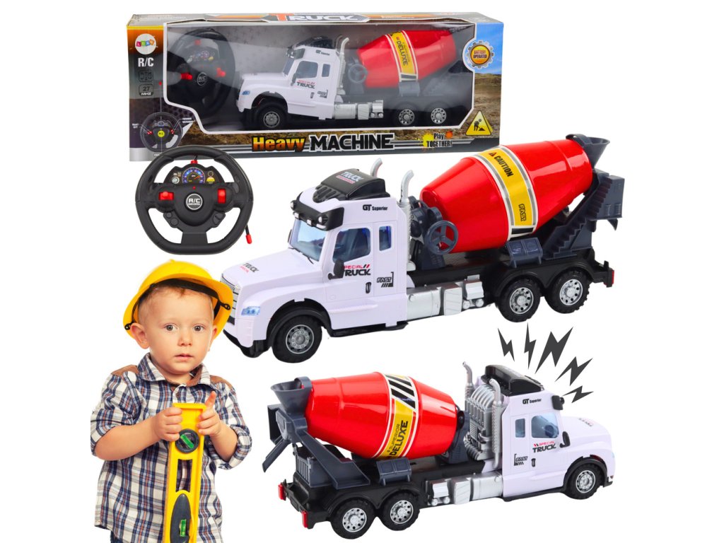 Obsahuje pohyblivé části, včetně otáčecího bubnu betonmíchacího stroje a pohyblivých součástí, které umožňují simulaci skutečné práce betonmíchacího stroje Betonmíchací kamion je dálkově řízený pomocí volantu