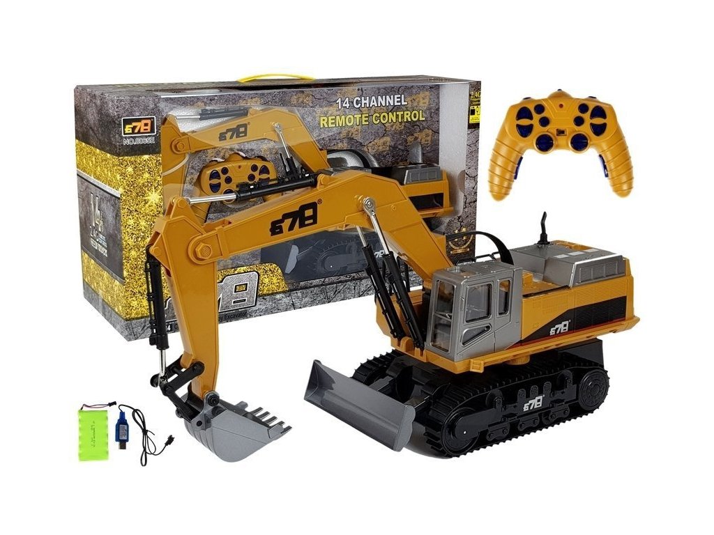 - Žlutý bagr s pohyblivým ramenem Dálkově ovládaný Žluto-černý bagr se vyznačuje mnoha výhodami
