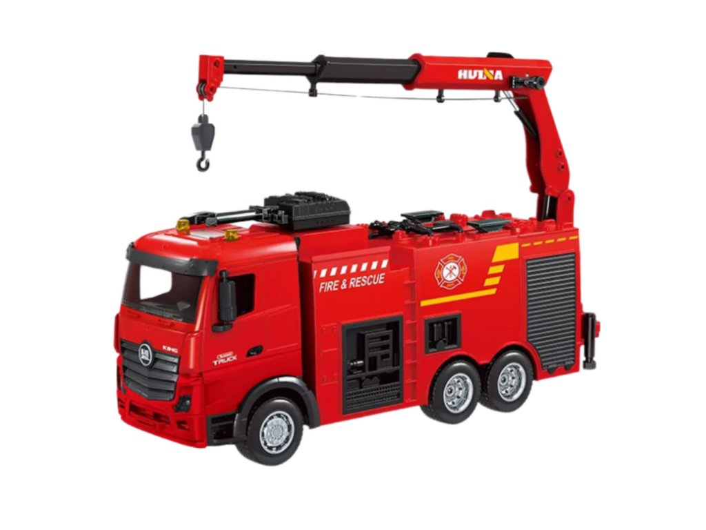 RC Hasičské Auto s Jeřábem na Dálkové Ovládání Světla Voda Huina 1:18
