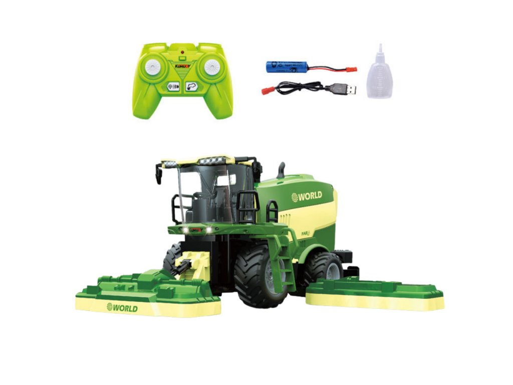 - ZVUKOVÉ EFEKTY A EFEKT PÁRY VODY Zcela unikátní zdalně řízený kombajn s rotačními sekáči na trávu je perfektní hračkou pro děti fascinované zemědělskými stroji a prací na farmě