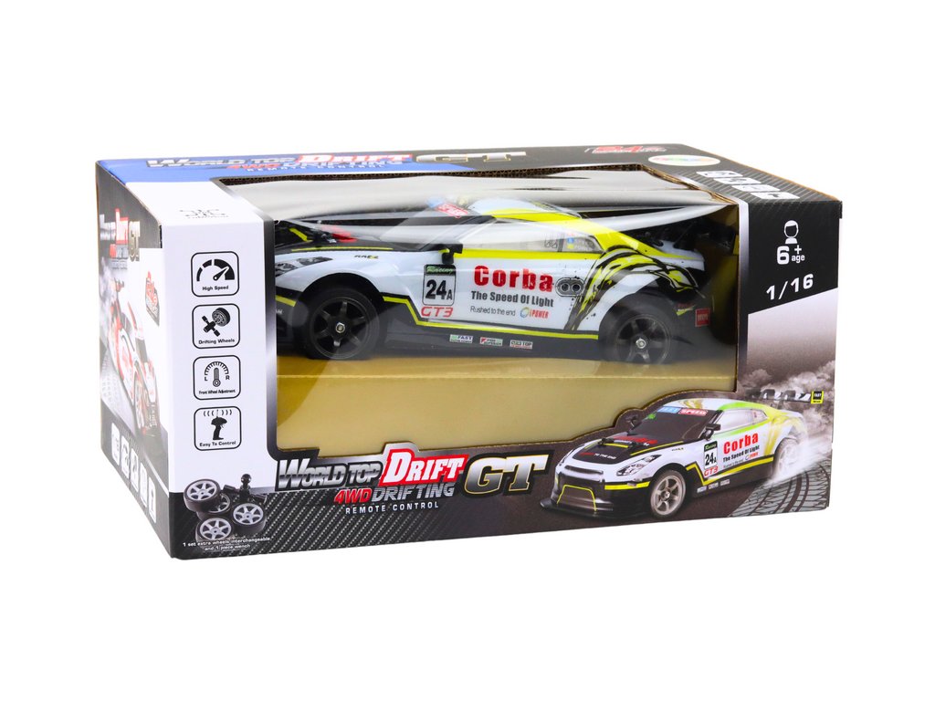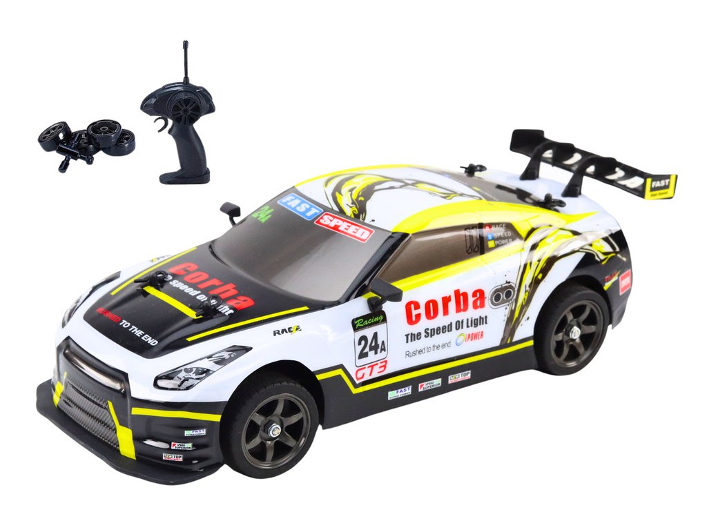 RC Sportovní Auto 1:16 Drift Vyměnitelná Kola Bílo-Žlutá