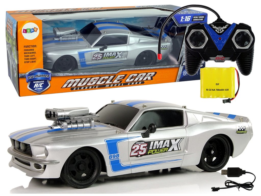 - Toto dálkově ovládané auto vyniká nejen stylovými modrými pruhy a stříbrným kompresorem, ale také svou odolností a precizností, s jakou zvládne i ty nejpřísnější zatáčky