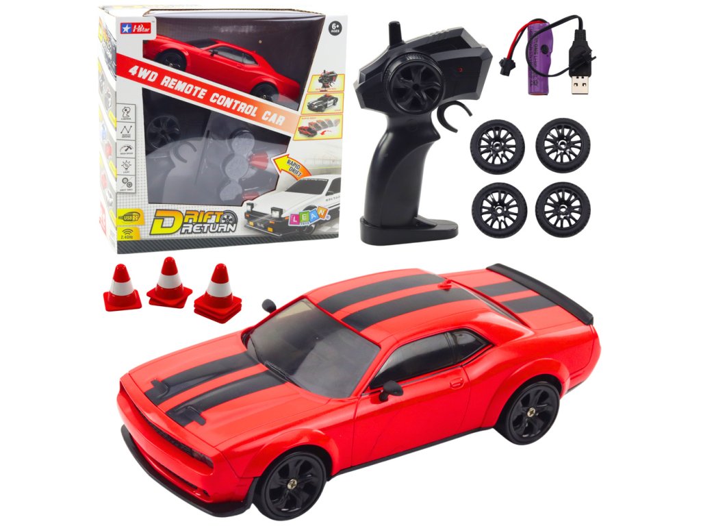 RC Sportovní Auto Drift 4WD s Výměnnými Kolami – Červené je dynamická a precizní hračka na dálkové ovládání, která přináší nezapomenutelné zážitky z jízdy.