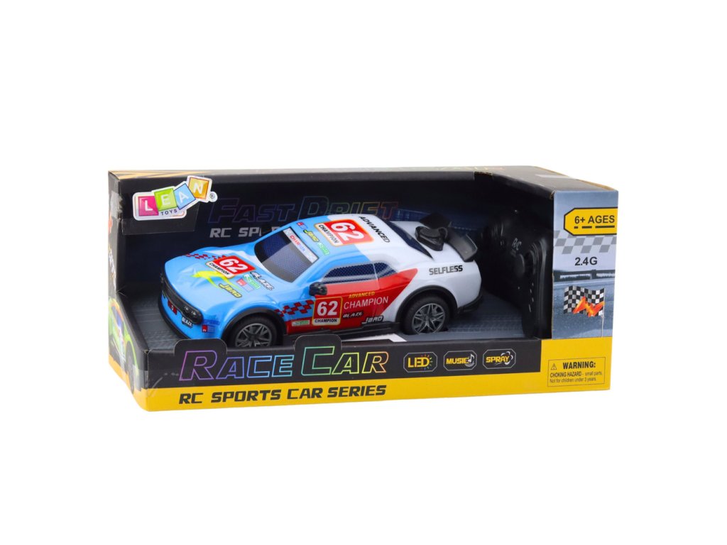 RC Sportovní Auto s LED Světly, Hudbou a Vodní Mlhou Modré 1:22