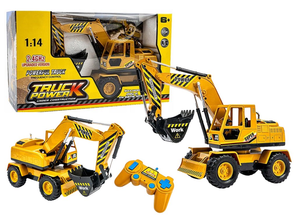 - Pojízdný stavební stroj bagr s radlicí RC 1:14 dálkově ovládaný Stavební bagr s přední radlicí v měřítku 1:14 je ideální hračkou pro každého malého stavebního operátora