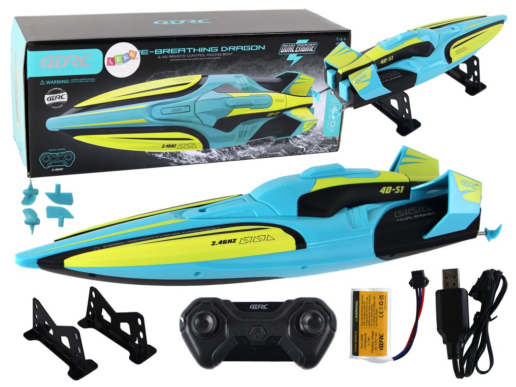 Motorová loďka dosahuje ohromující rychlosti až 40 km/h, což zaručuje extrémně dynamickou a vzrušující jízdu. Díky voděodolnosti je bota imunní vůči stříkající vodě a různým vodním podmínkám, což zvyšuje její trvanlivost a bezpečnost při používání. Efektní světelné prvky dodávají modelu moderní vzhled, který vyniká jak za denního světla, tak po setmění.