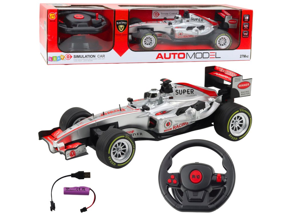 RC Závodní Auto na Dálkové Ovládání s Volantem, Světly a Zvuky 1:12 Stříbrné
