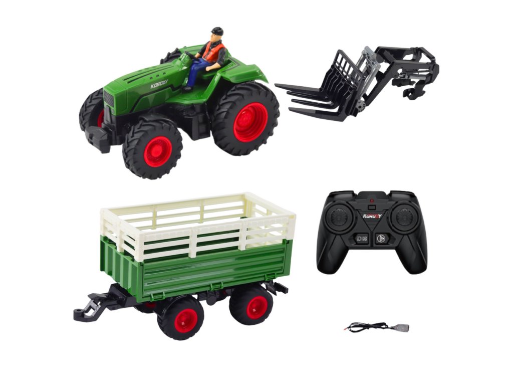 - Představujeme vám RC Zemědělský Traktor s Přívěsem a Vidlemi 2.4G, perfektní volbu pro malé nadšence zemědělské techniky!