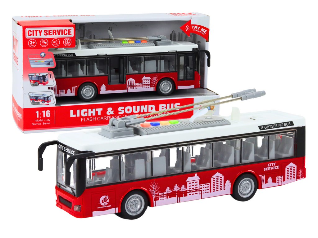 Realistický Trolejbus 1:16 s Efekty - Bílo-Červený, Pro Děti od 3 Let