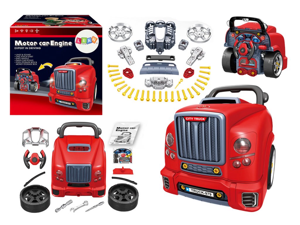 Rozebratelný Červený Nákladní Vůz s Dílenskou Sadu pro Mladé Kutili je ideální pro děti, které chtějí rozvíjet své mechanické dovednosti a kreativitu Tento červený nákladní vůz je nejen hračkou, ale také nástrojem pro podporu manuálních schopností nejmenších