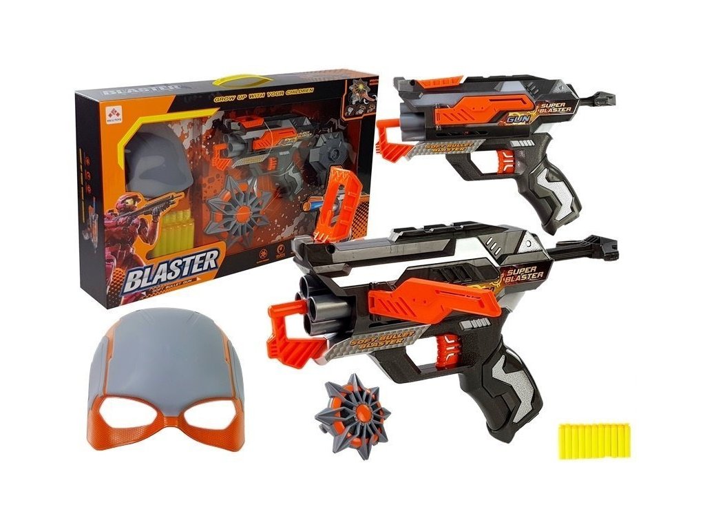 Pistole na pěnové šipky s maskou Hračky imitující pistole jsou prvky, které se velmi často vyskytují v hrách chlapců.