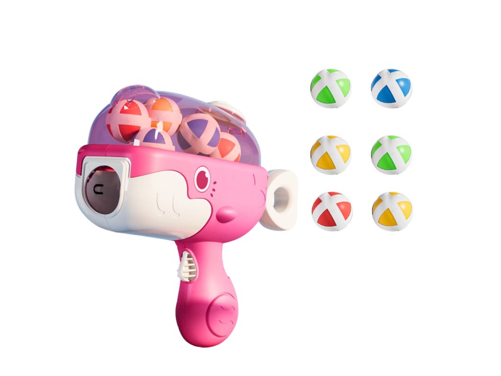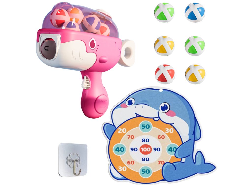 - Užijte si zábavu a výzvu s naším jedinečným produktem Růžová Velryba: Pistol na Kuličky s Suchým Zipem a Textilním Terčem!