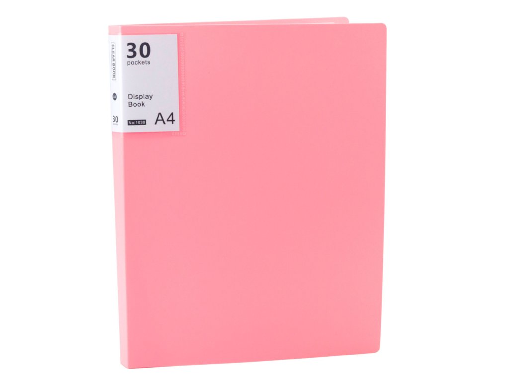 Růžové obchodní portfolio A4 s 30 průhlednými obaly