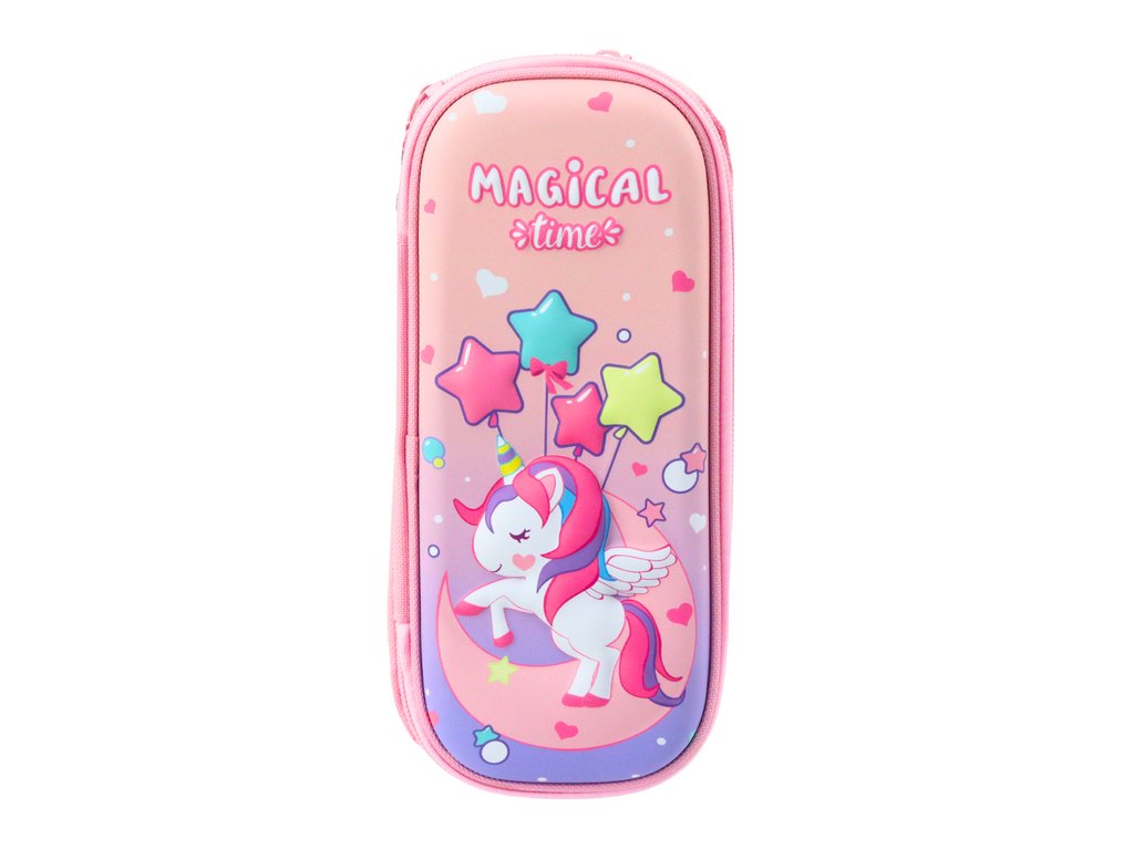 - Růžový 3D penál s jednorožcem je ideální volbou pro mladé milovnice těchto tvorů, které chtějí skloubit funkčnost s roztomilým designem